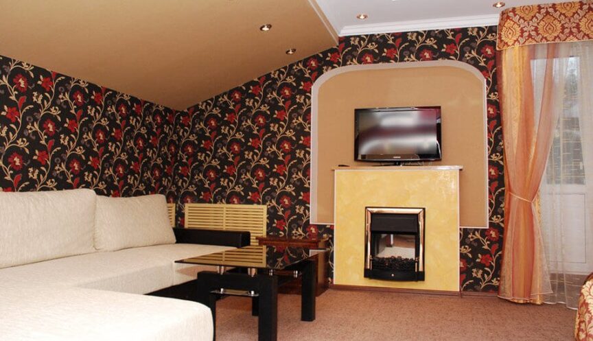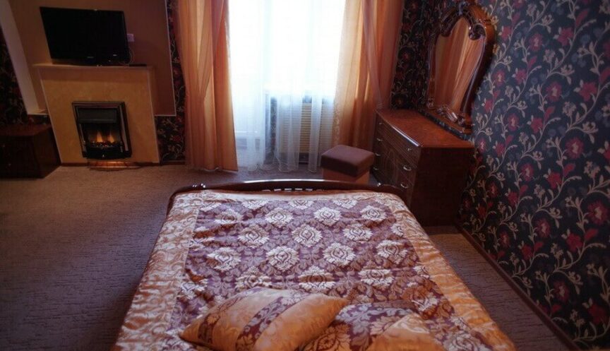 Номер оборудован камином и телевизором, что создаёт уютную атмосферу. В санузле вы найдёте душ, фен и туалетные принадлежности.