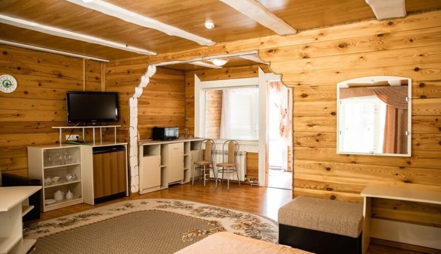 Для удобства гостей в номере есть телевизор, холодильник, электрочайник и микроволновая печь.